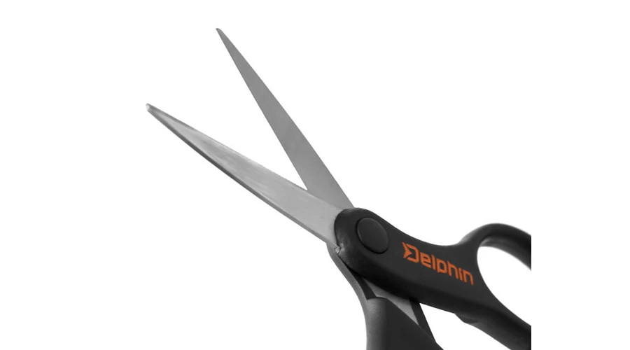 A hossza 14cm. A penge hossza 5,5 cm. A rozsdamentes acélból készült vastag pengék nagyon élesek. A kar fekete műanyagból készültek, Delphin logóval. Ezentúl semmilyen fonott zsinór nem fog ki Önön.