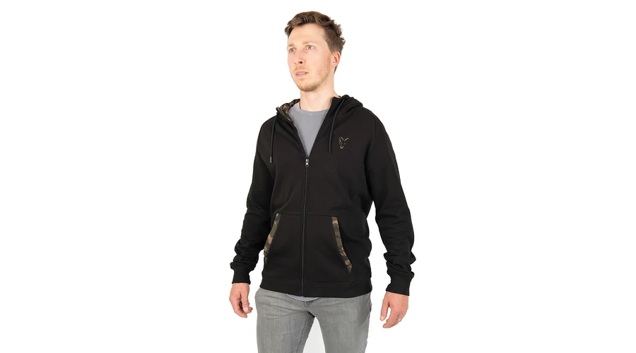 - Vékony, fekete, elől teljes hosszban cipzáras kapucnis pulóver