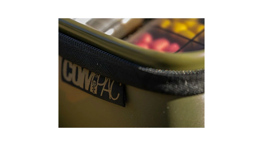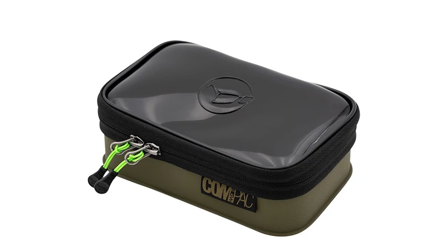 A Korda Compac táskaszéria a legjobb megoldás az aprócikkek szerelékek tárolására, valamint nagyon hasznos lehet minden egyéb olyan tárgy tárolására, amely a horgászat során kellhet és szervezettségre és praktikus tárolásra van szükség. EVA anyagbó l készült, amely rendkívül könnyű és tartós, mindemellett 100%-ig vízálló a hegesztett varratoknak köszönhetően. A sorozatban lévő minden táska kétirányú cipzár segítségével nyitható a tetején. A fedél belső hálós zsebbel van ellátva, ahová kissebb eszközöket, mint például egy fűzőtó, olló, vagy PVA hálót rakhatunk.