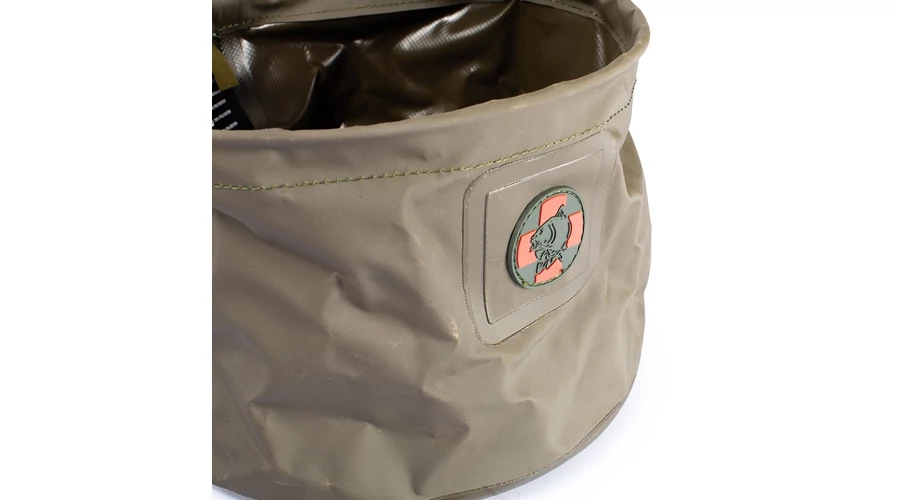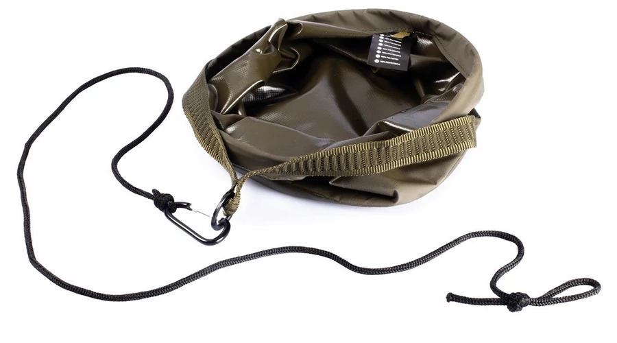 Az alak stabilitásának garantálása érdekében, amikor a tartályt vízzel töltik, a tartály tetején egy fémgyűrű található. A 1,5 méteres, csavarodásnak ellenálló kábel lehetővé teszi a tartály egyszerű leengedését és feltöltését meredek partokról. A zsinór a karabinerhez van rögzítve, így ha nincs szüksége a zsinórra, könnyen kivehető. Remek kütyü a vizes ponty parton tartására fényképezés közben, vagy edényként is használható a szerelék mechanikájának tesztelésére.